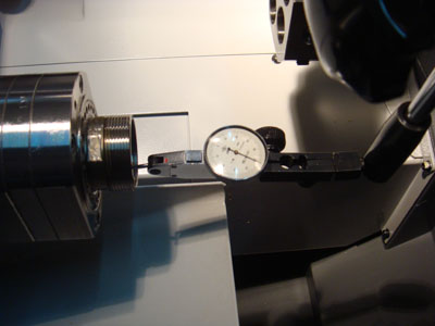 7、背軸軸向跳動:用千分表觸頭接觸主軸內(nèi)徑,旋轉(zhuǎn)主軸,觀察千分表指針數(shù)據(jù). 加工影響:產(chǎn)品真圓度,產(chǎn)品光潔度,正/背面加工同心度